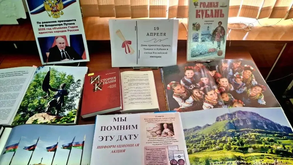 16 апреля в рамках реализации краевого онлайн-проекта литературно-исторического хронографа «От Героев Великой Отечественной войны к Героям нашего времени», организованным Краснодарской краевой библиотекой им. И.Ф. Вараввы, в межпоселенческой библиотеке состоялась информационная акция «Мы помним эту дату». Информационная акция «Мы помним эту дату» приурочена к празднику «День принятия Крыма, Тамани и Кубани в состав Российской империи в 1783 году». В ходе мероприятия вниманию участников был обращен исторический факт: 243 года назад императрица Екатерина II подписала манифест «О принятии Крымского полуострова, острова Тамани и всея Кубани под державу Российскую». Федеральным законом РФ от 3 августа 2018 года установлена новая памятная дата России 19 апреля – День принятия Крыма, Тамани и Кубани в состав Российской империи.